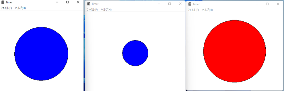 簡単なゲームをするときに、10秒間でいくつできるかなと言ったりします。そこで、パソコンに10秒を数えさせることを考えました。このアプリは任意のキーを押すと、青丸になり、だんだん小さくなり、タイムアップで赤くなります。
